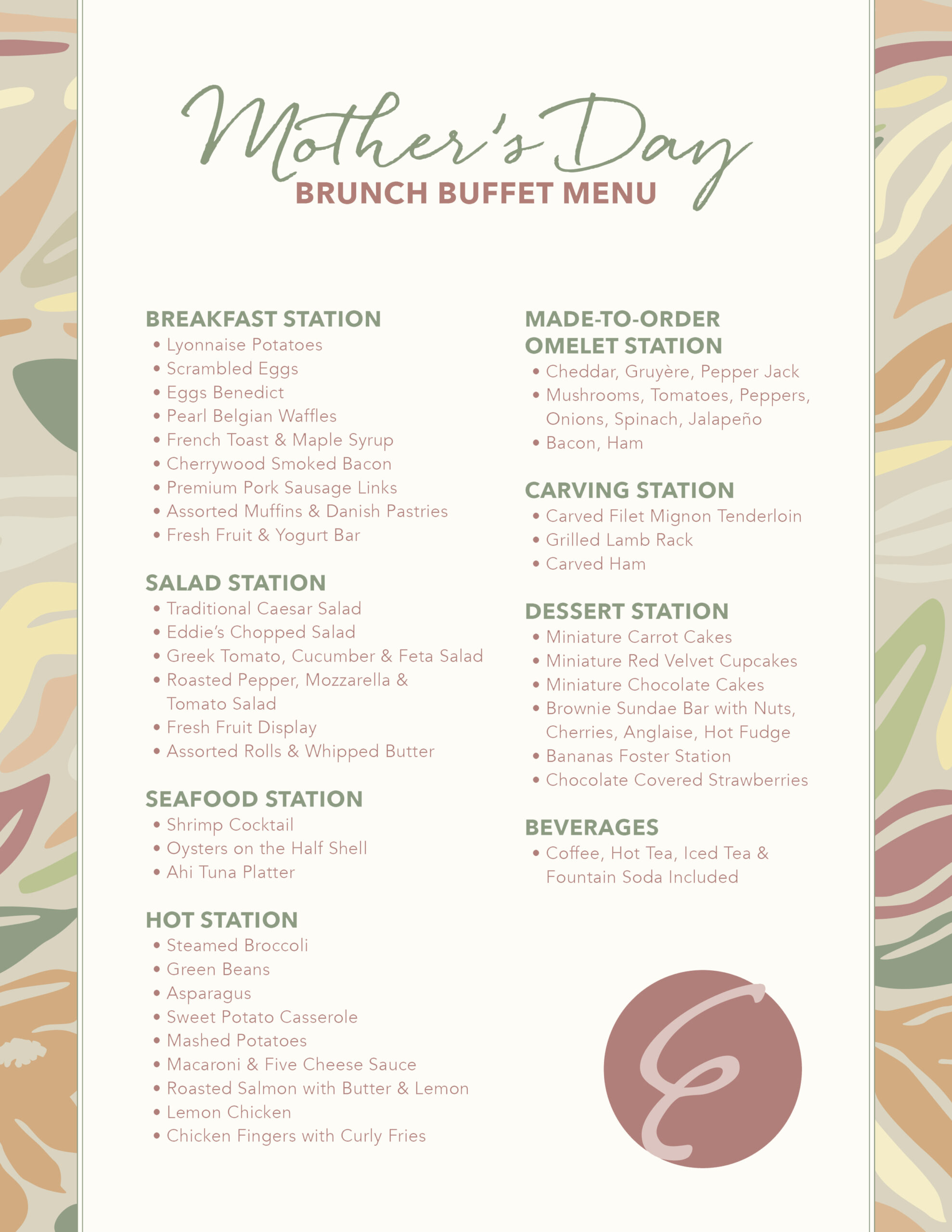 Celebrate Mother’s Day at Eddie Merlot’s. Join us for a special brunch buffet on Sunday, May 10 and indulge in traditional brunch treats, Eddie Merlot’s classic dishes and our famous desserts, paired perfectly with mimosas and bloody marys.