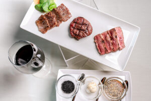 Taste a decadent trio of Wagyu steaks from Japan, Australia and the USA. Paired with sauces, salt and butter to compliment each bite.
