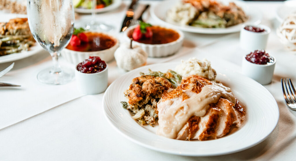 If you are celebrating the holiday at home, place your pre-order online and have your holiday meal available for takeout or delivery, prepared by us ready for you to take and warm at home. Our three-course Thanksgiving take-and-warm options are portioned for 5 or 10 people.